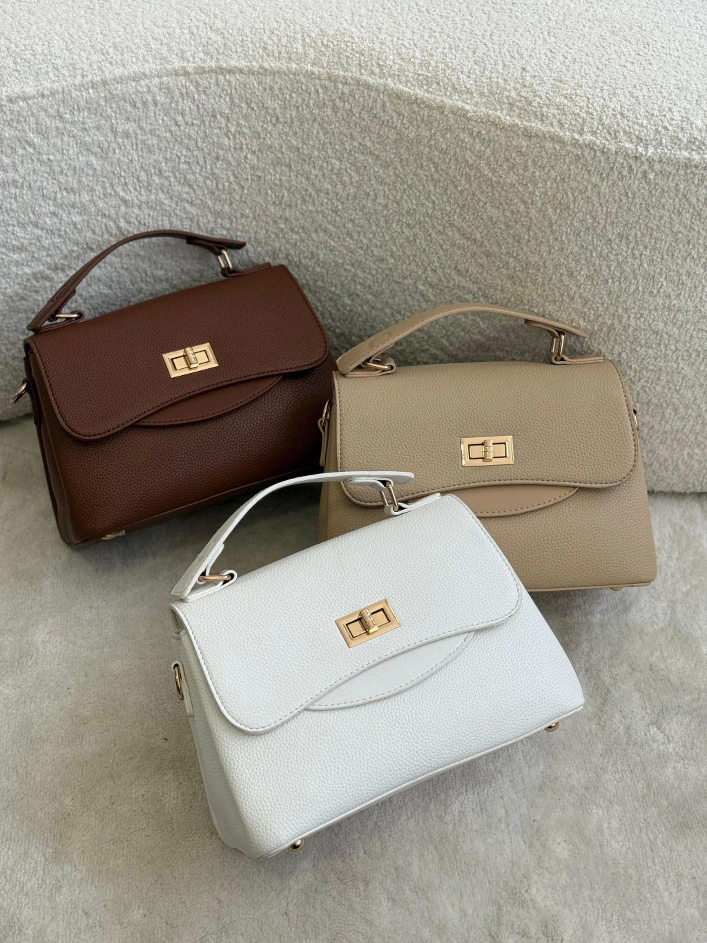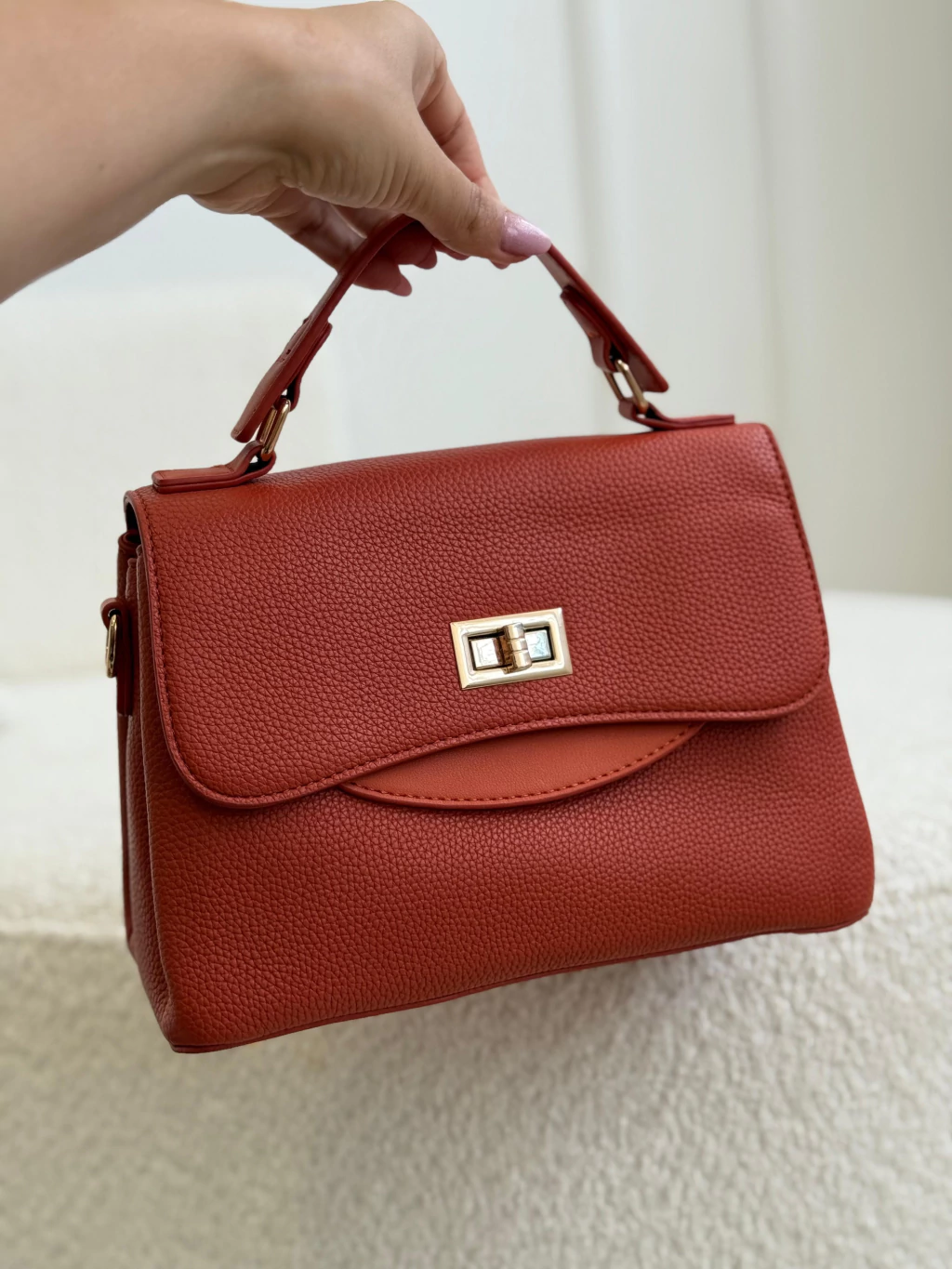 Seu design clean com fecho dourado traz sofisticação na medida certa, enquanto a estrutura firme garante praticidade para o dia a dia ou ocasiões especiais.
