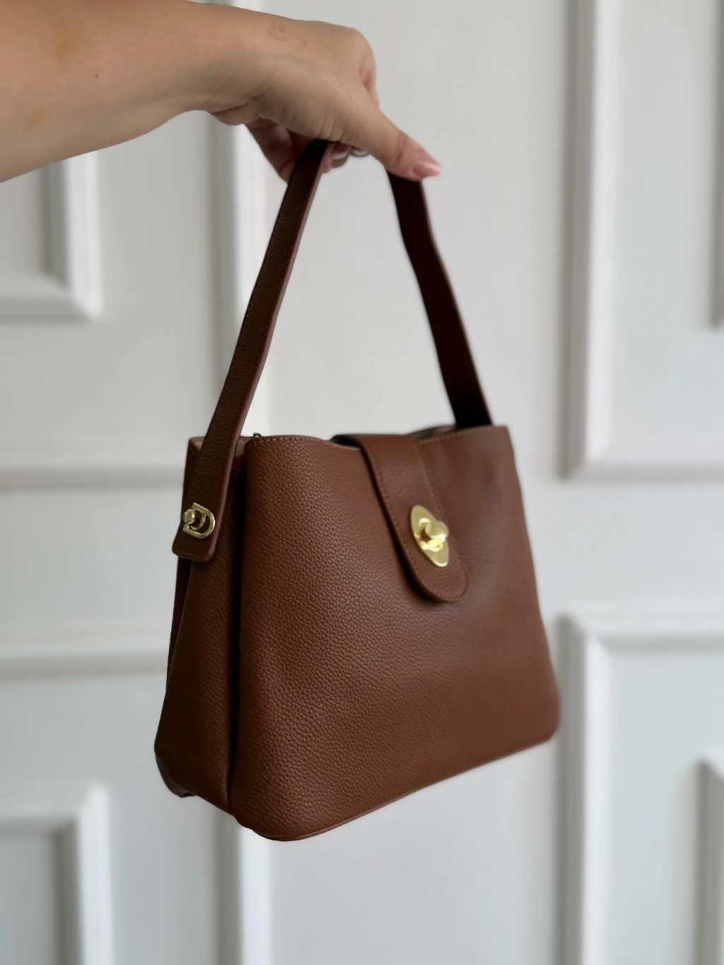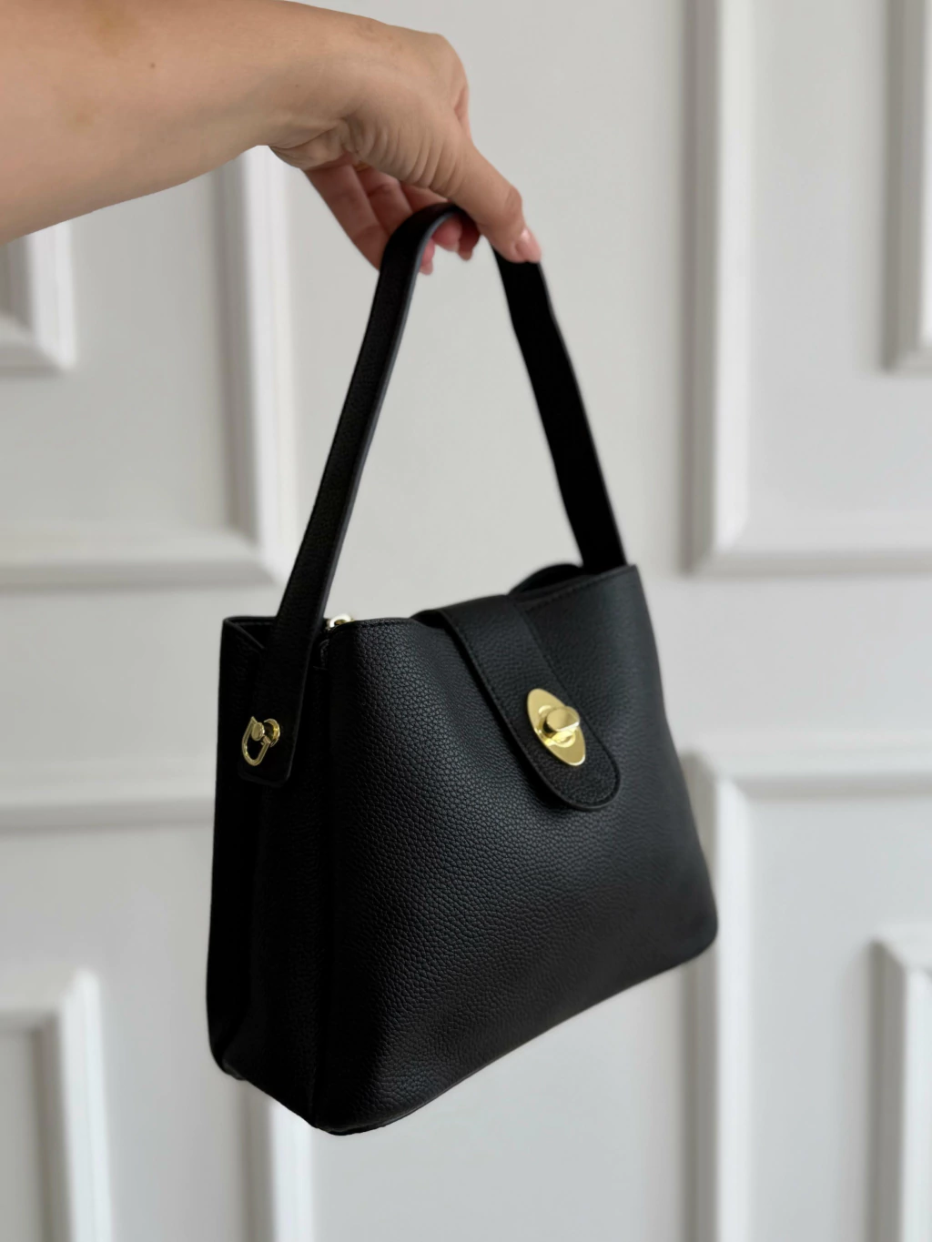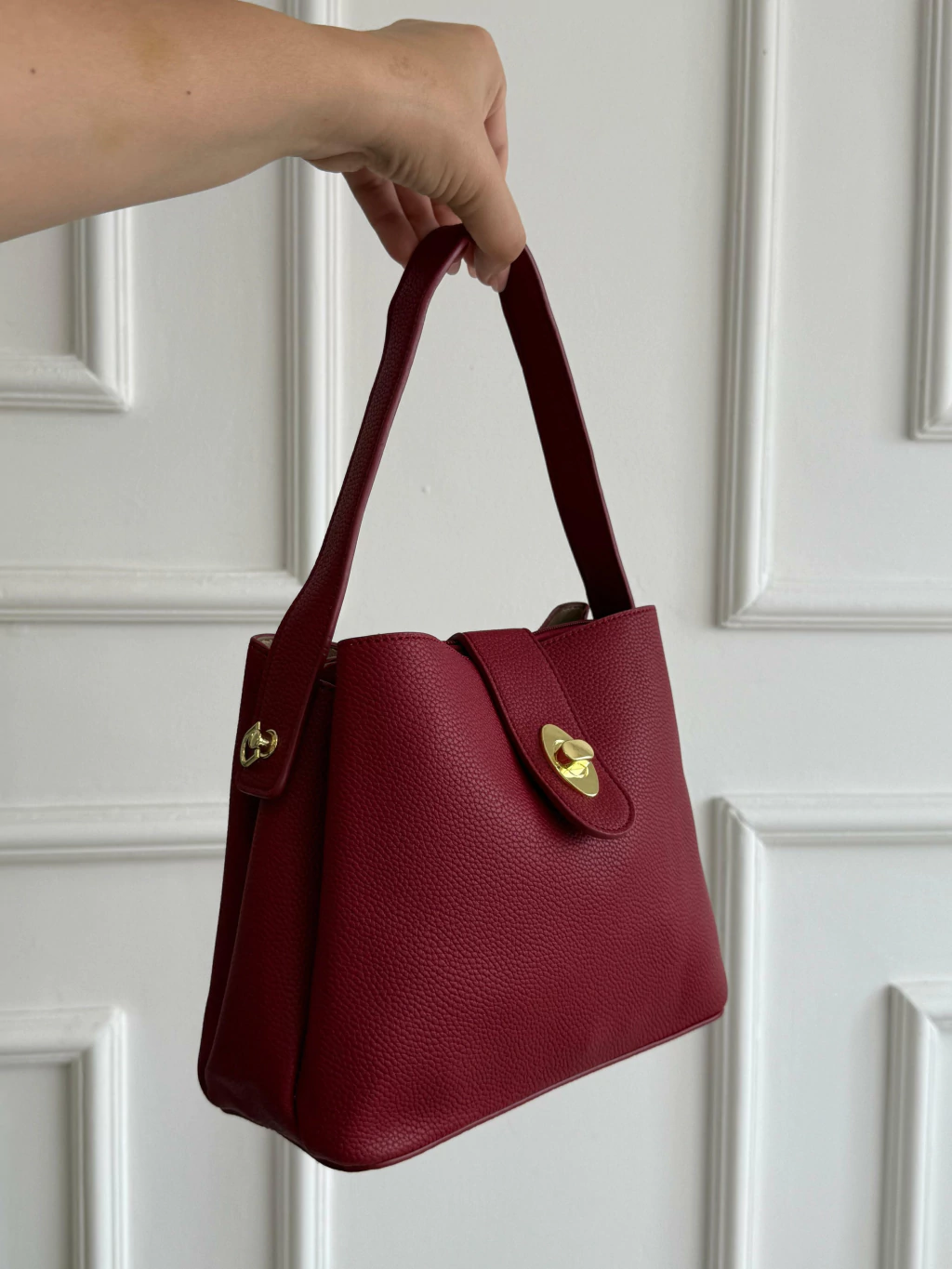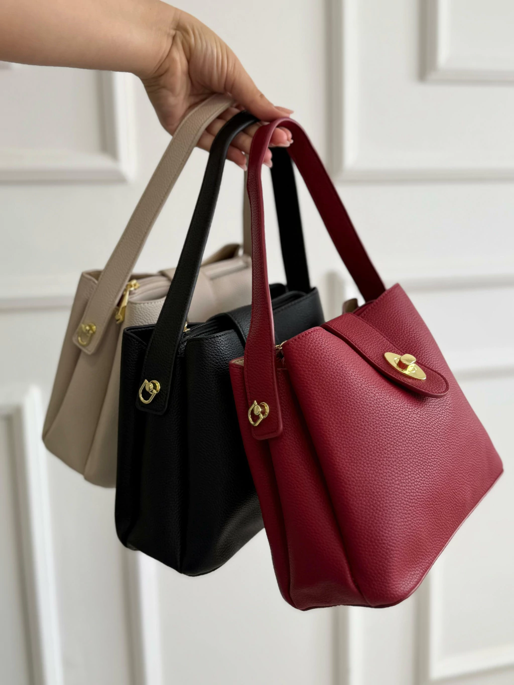 O destaque fica por conta do fecho dourado frontal, que garante charme e praticidade no dia a dia.