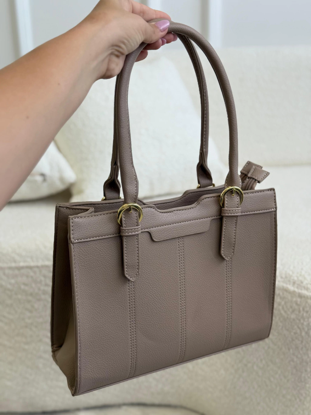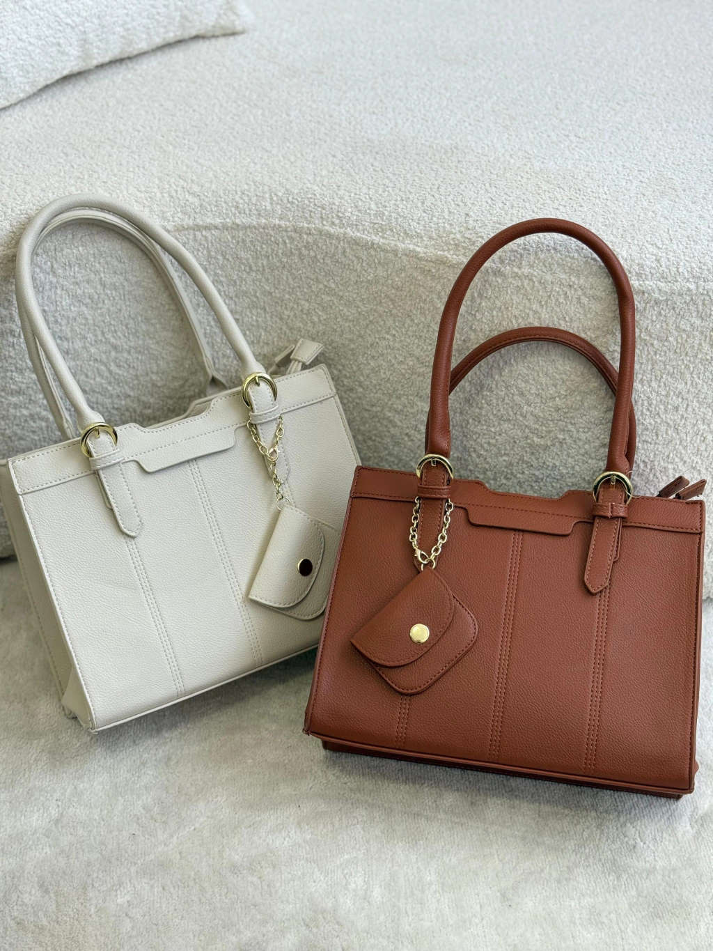 Elegante e versátil, a bolsa estruturada em couro sintético texturizado é perfeita para acompanhar você no dia a dia.