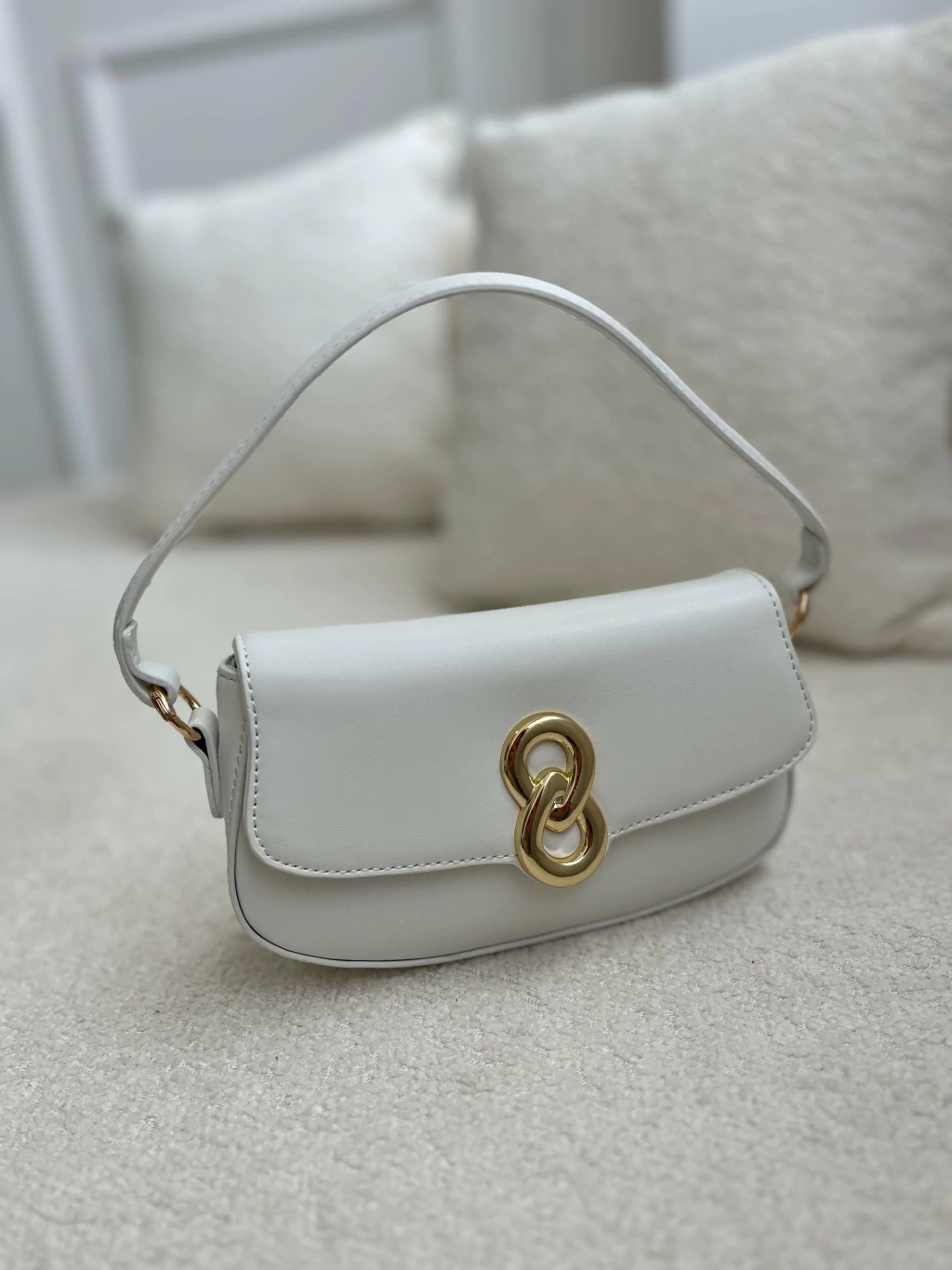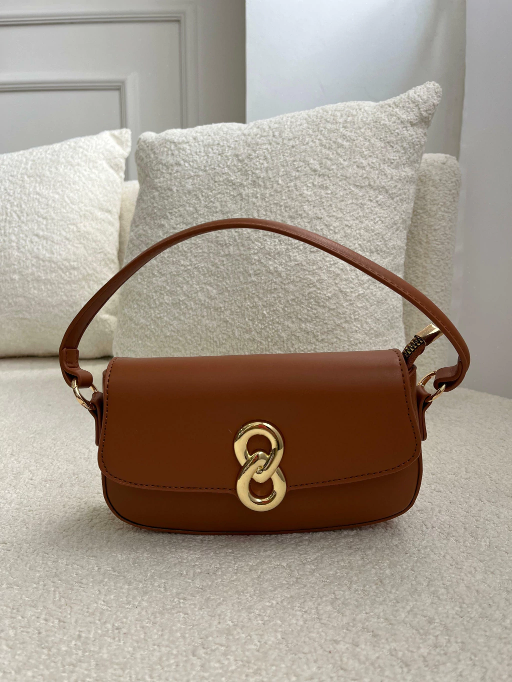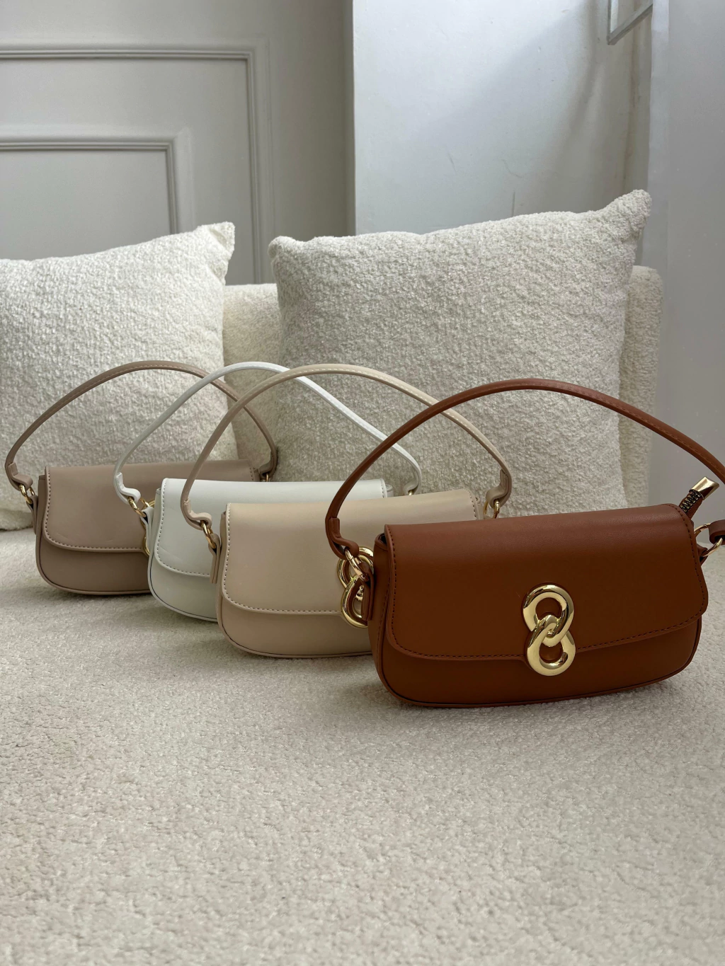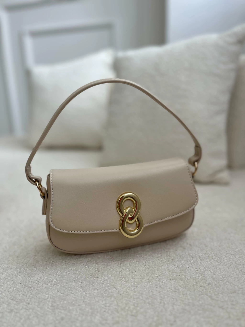 Seu design minimalista ganha destaque com o fecho em argolas douradas entrelaçadas, que traz modernidade e charme ao modelo. Compacta e versátil, pode ser usada tanto em looks casuais quanto em produções mais arrumadas.