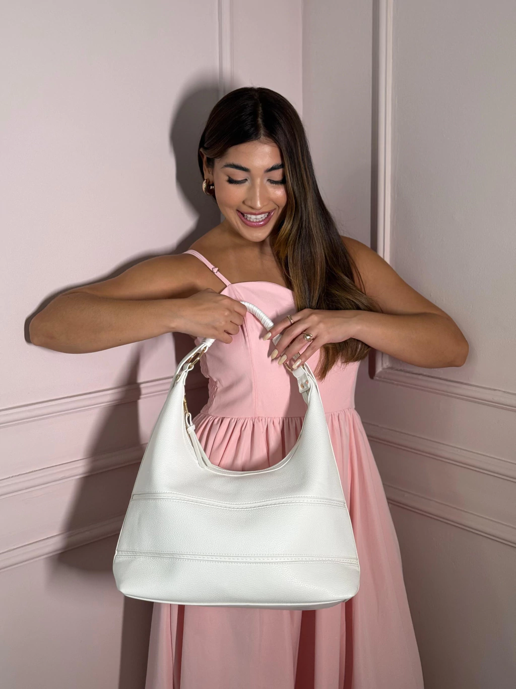 Uma peça elegante e versátil, esta shoulder bag é confeccionada em material texturizado de alta qualidade, unindo sofisticação e praticidade.