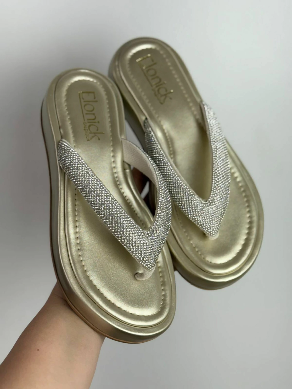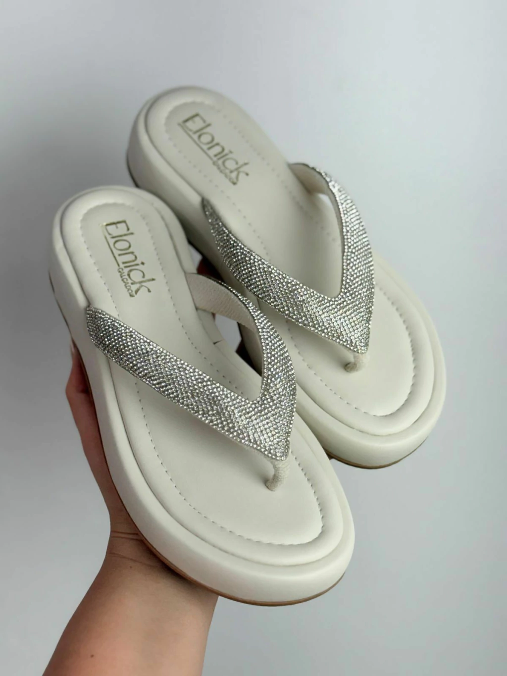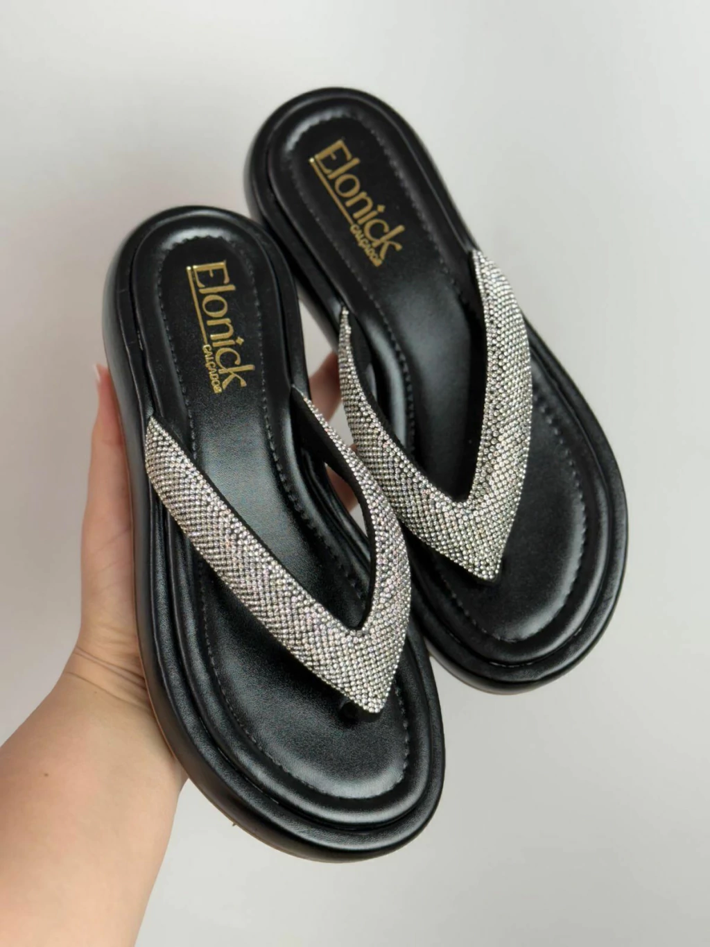 As tiras em strass garantem sofisticação e estilo, perfeita para ocasiões casuais ou looks mais elaborados.