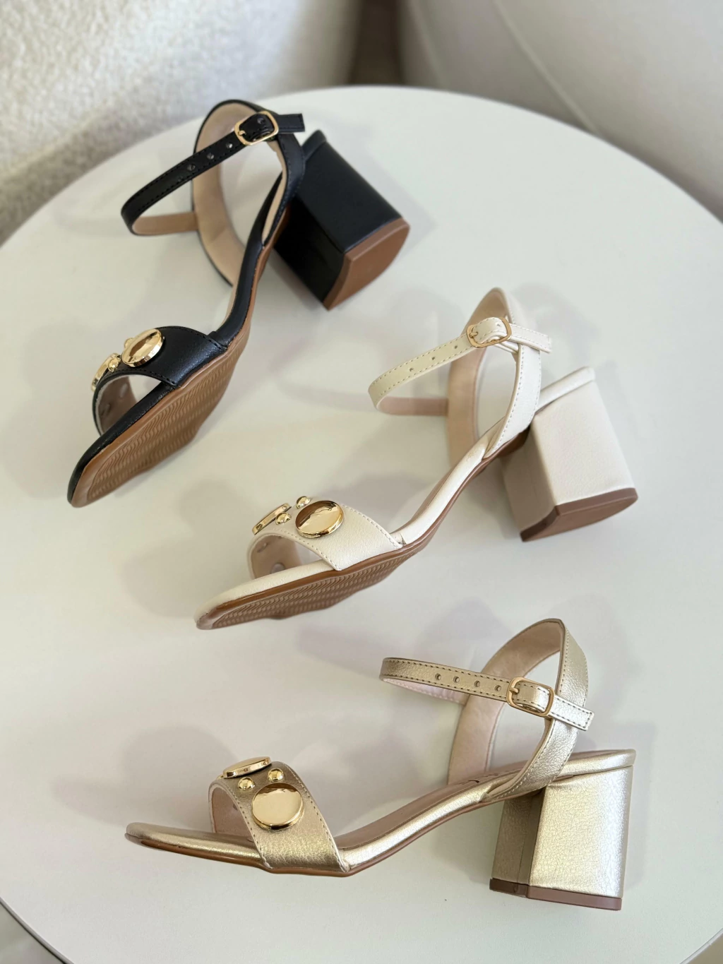 O salto bloco baixo oferece estabilidade e conforto ao caminhar, enquanto a fivela lateral permite um ajuste preciso.